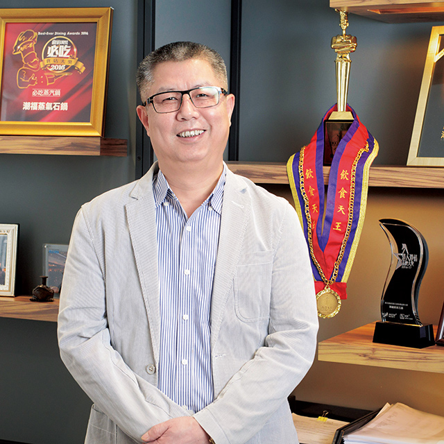 広東省珠海市出身。飲食業界一筋で40年以上。大手飲食グループの責任者として約20年務めた経歴を持ち、運営から業務開拓までさまざまな分野で活躍する。その経験を活かして、4年前に独立、飲食グループ「厚福集団」を創立。「蒸気石鍋」料理店をメインに4年で約13店舗を立ち上げる。